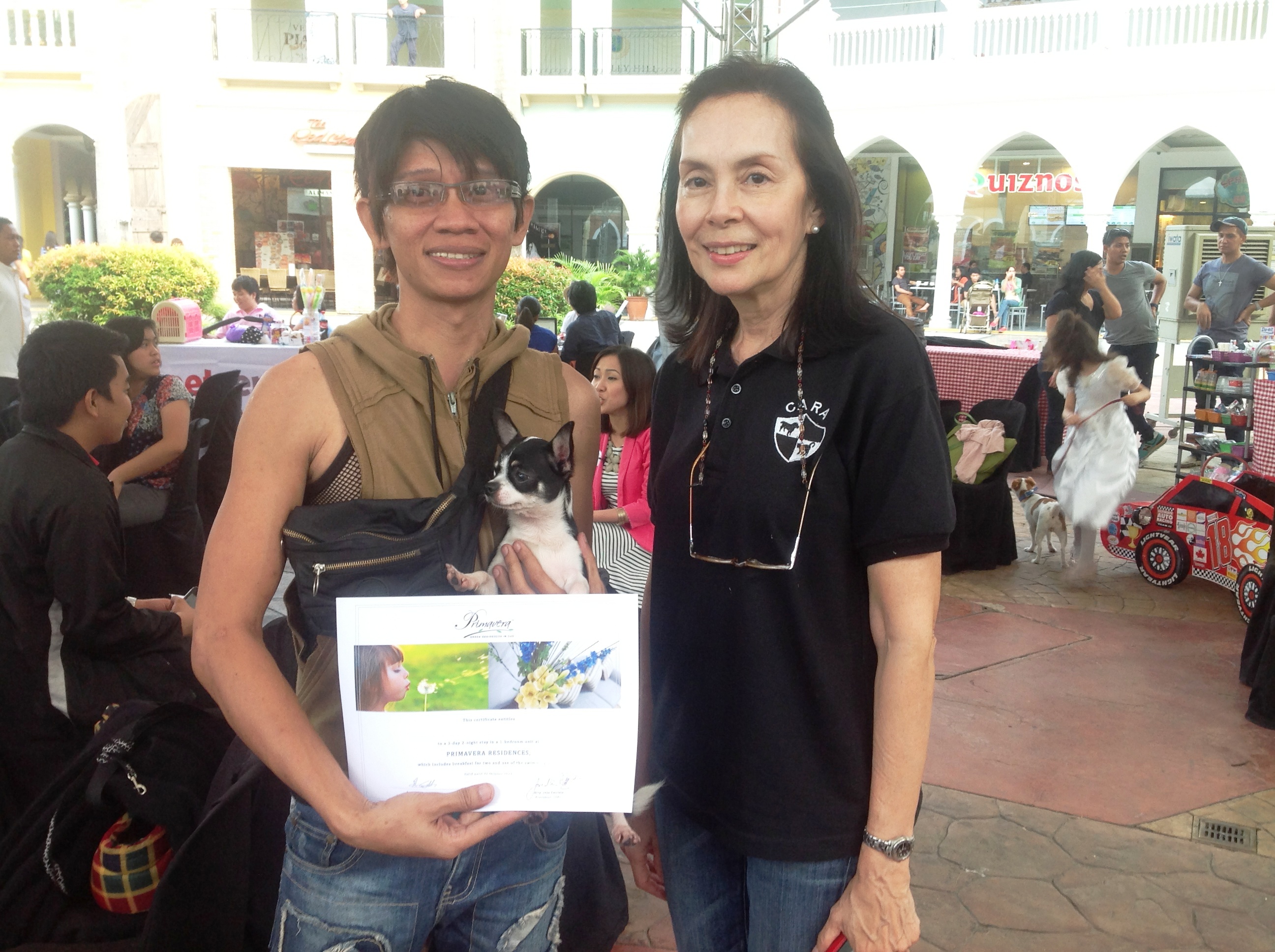 Thirty dogs and cats competed for the fashion show and only three emerged as top winners: Charlie dela Cruz and Yccolei, first place; Sarah Jane Lee and JJ, second place; and Charles Galang and Asia, third place. The winners brought home loot bags, while the first placer tandem got an additional gift certificate for a 3-days, 2-nights stay (with breakfast) at the Primavera Residences. Other giveaways were from Ovaltine, Whole Pet Kitchen, and Doodles Paw Couture.